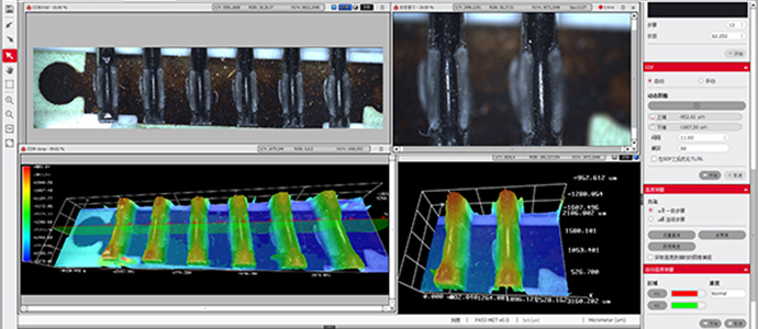 超景深合成運(yùn)用于高倍放大觀察后,不同平面產(chǎn)品進(jìn)行景深疊加,獲取立體三觀察圖像。