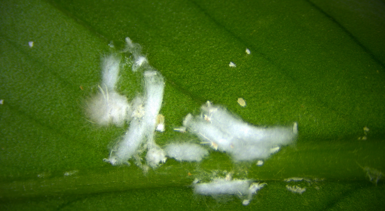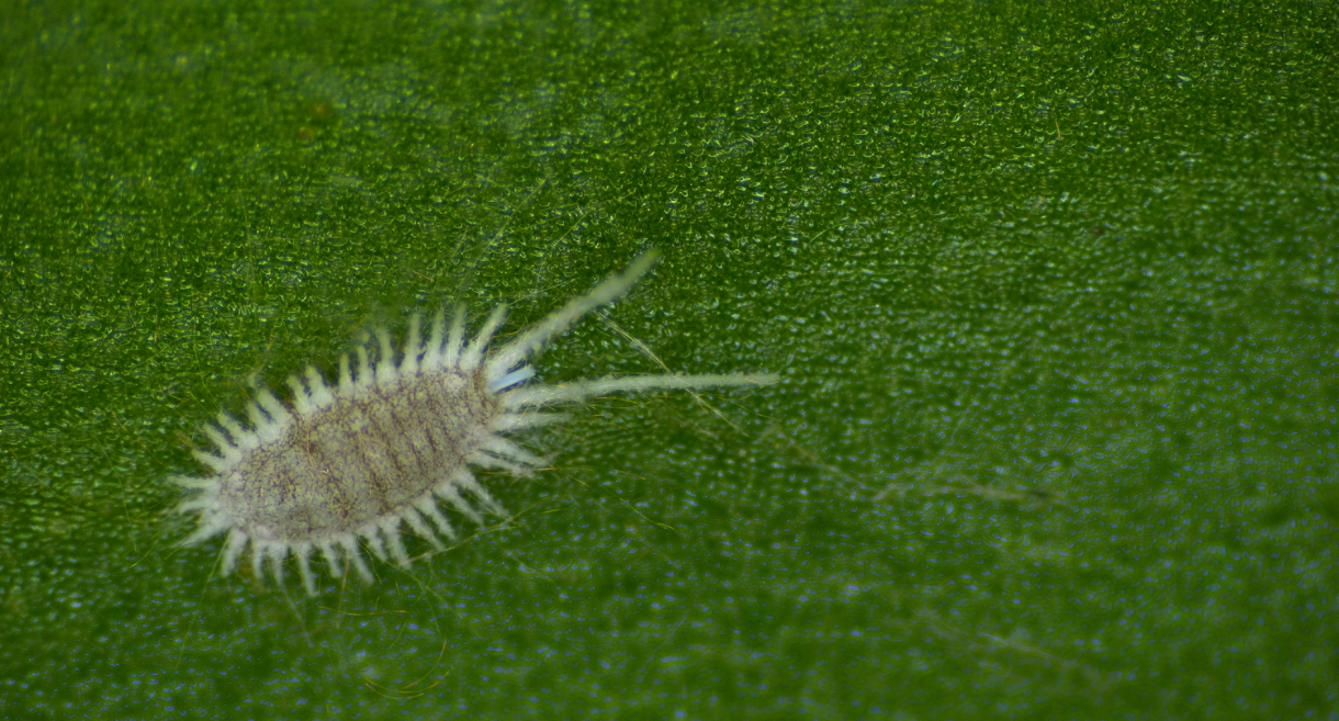 今天我們就通過(guò)顯微鏡的幫助來(lái)認(rèn)識(shí)一下微觀世界下的小蟲(chóng)子們。在我們?nèi)庋蹃?lái)看,綠蘿葉子上有一個(gè)白色芝麻大的小點(diǎn),放大來(lái)看卻是這個(gè)小蟲(chóng)子軟綿綿的家,一只成蟲(chóng)在里面被包裹著,忙碌著筑巢。葉子的周圍在爬行的是幼蟲(chóng),好像在尋覓食物,而且它們不只是白色的,在顯微鏡下是彩色的多爪小蟲(chóng)子。