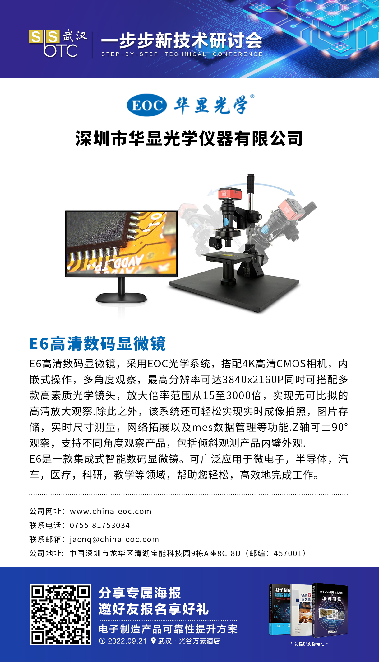 深圳市華顯光學儀器有限公司誠摯地邀請您參加下周三 《智電子制造產(chǎn)品可靠性提升方案》為主題,在武漢.光谷萬豪酒店進行的一步步新技術(shù)研討會。