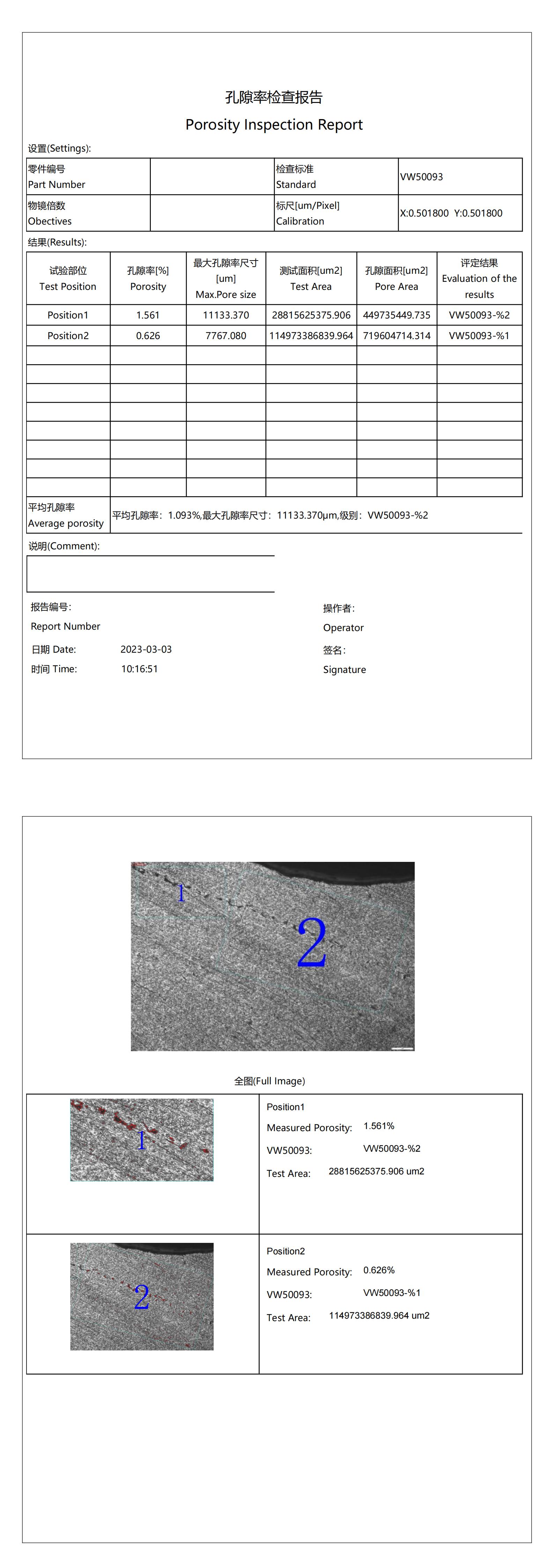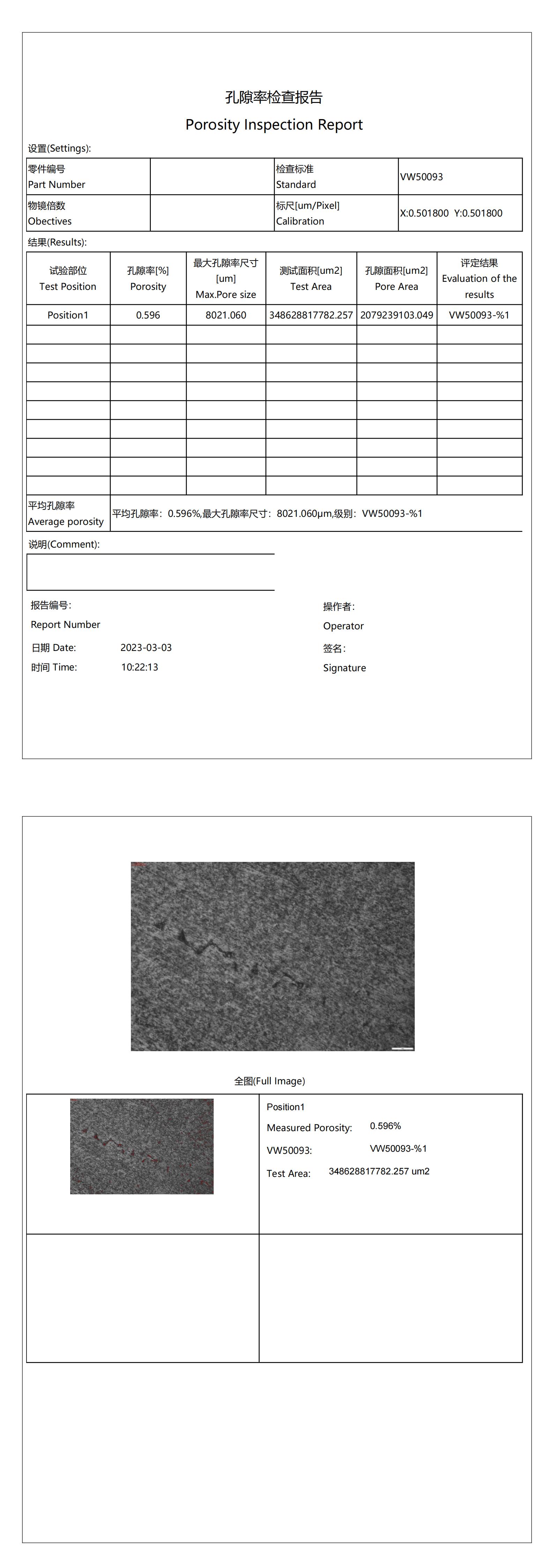 符合行業(yè)專業(yè)的孔隙率分析系統(tǒng),操作簡單,測量結(jié)果準(zhǔn)確、可靠。可以根據(jù)用戶特殊要求自定義檢查分類數(shù)據(jù),很好的兼容廣內(nèi)標(biāo)準(zhǔn)、自定義標(biāo)準(zhǔn)等情況。支持定義技術(shù)規(guī)格,輸出評價(jià)結(jié)果。