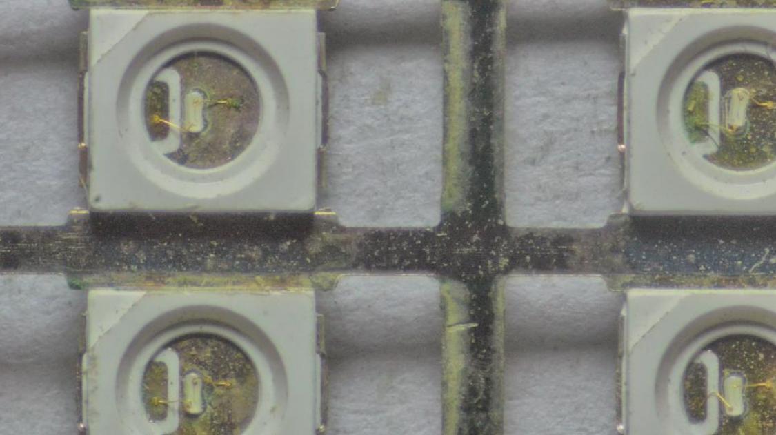 采用金相顯微鏡對(duì)LED芯片的焊盤、金線是否氧化進(jìn)行放大觀察,常規(guī)金相顯微鏡屬于平面放大,二維尺寸可以精密測(cè)量;在封裝運(yùn)用中,邦定線的弧高同樣作為品質(zhì)檢測(cè)的數(shù)據(jù)來源。