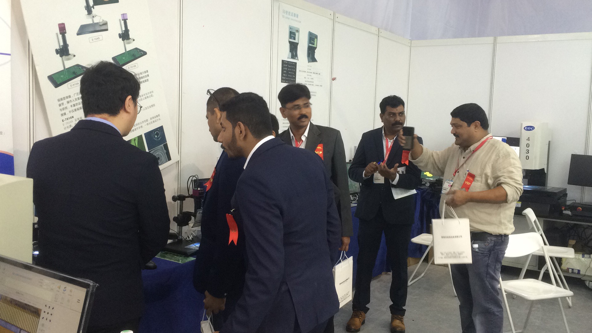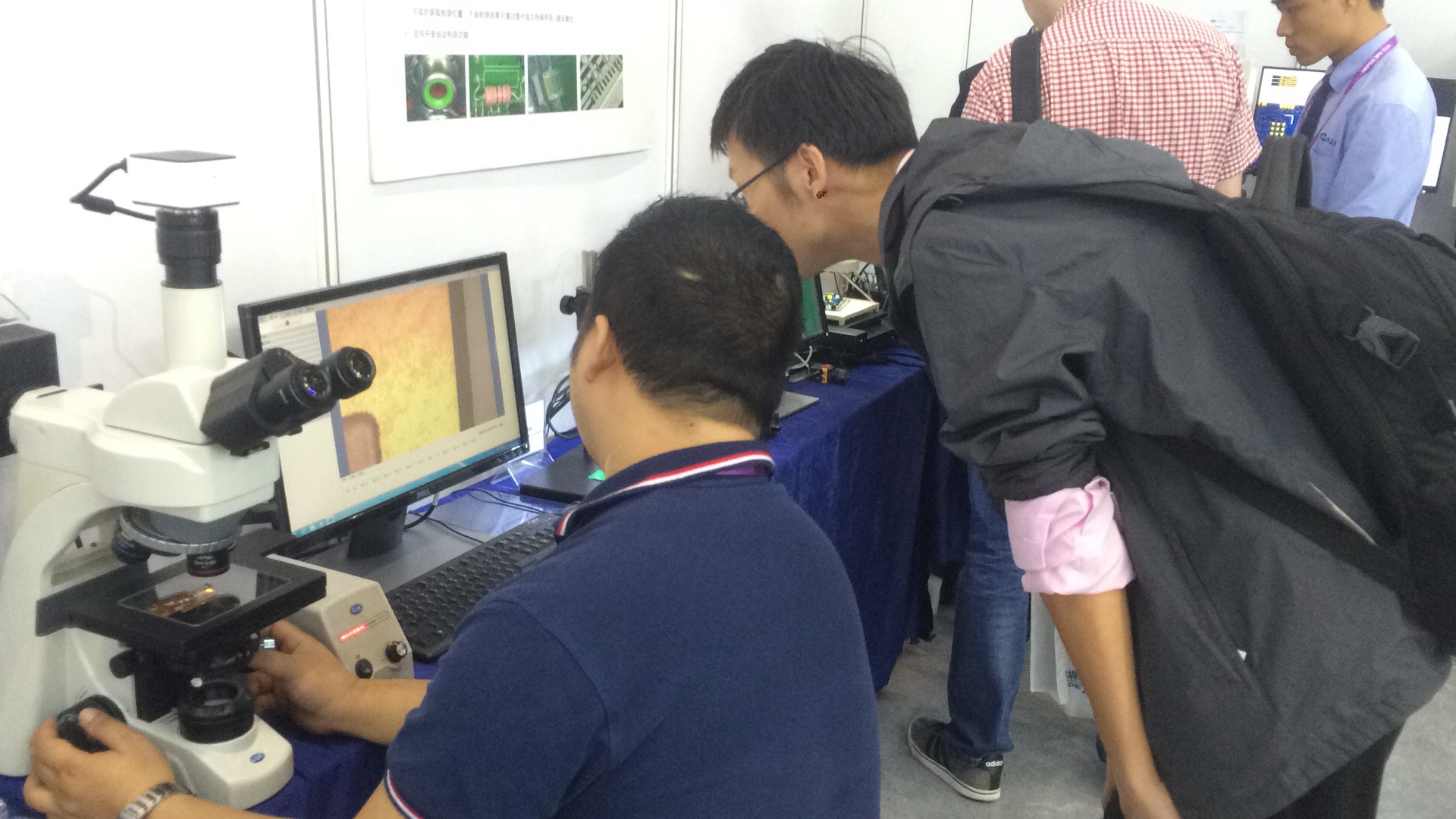 我們的高清顯微鏡效果展示還吸引國際友人。外貿同事向國際友人介紹產品功能及行業(yè)應用領域