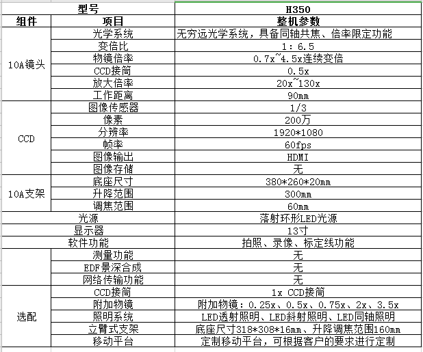 H350視頻顯微鏡采用無窮遠(yuǎn)光學(xué)系統(tǒng),該系列配備高景深、高物距鏡頭、高清工業(yè)相機(jī),