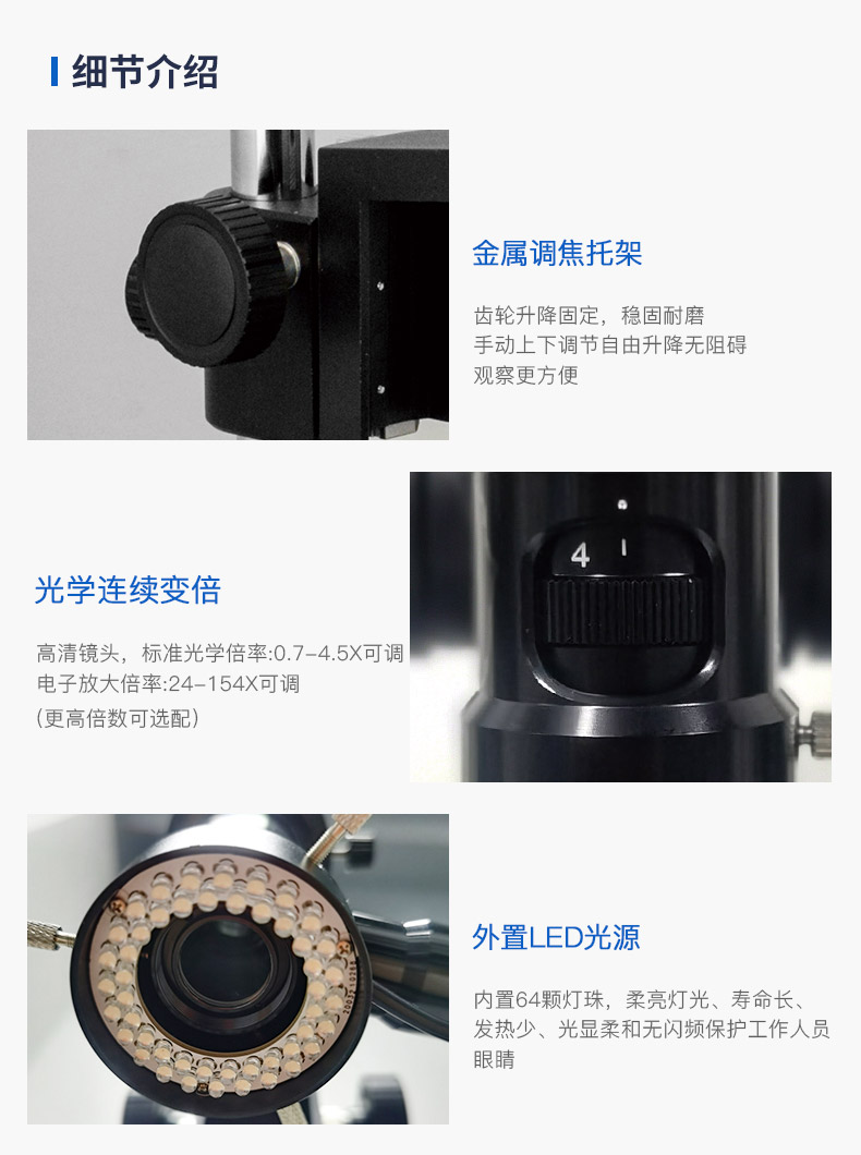 E-7010系列視頻顯微鏡采用華顯光學(xué)最新升級的700系列高清連續(xù)變倍鏡頭,配合SXGA系列高清工業(yè)
