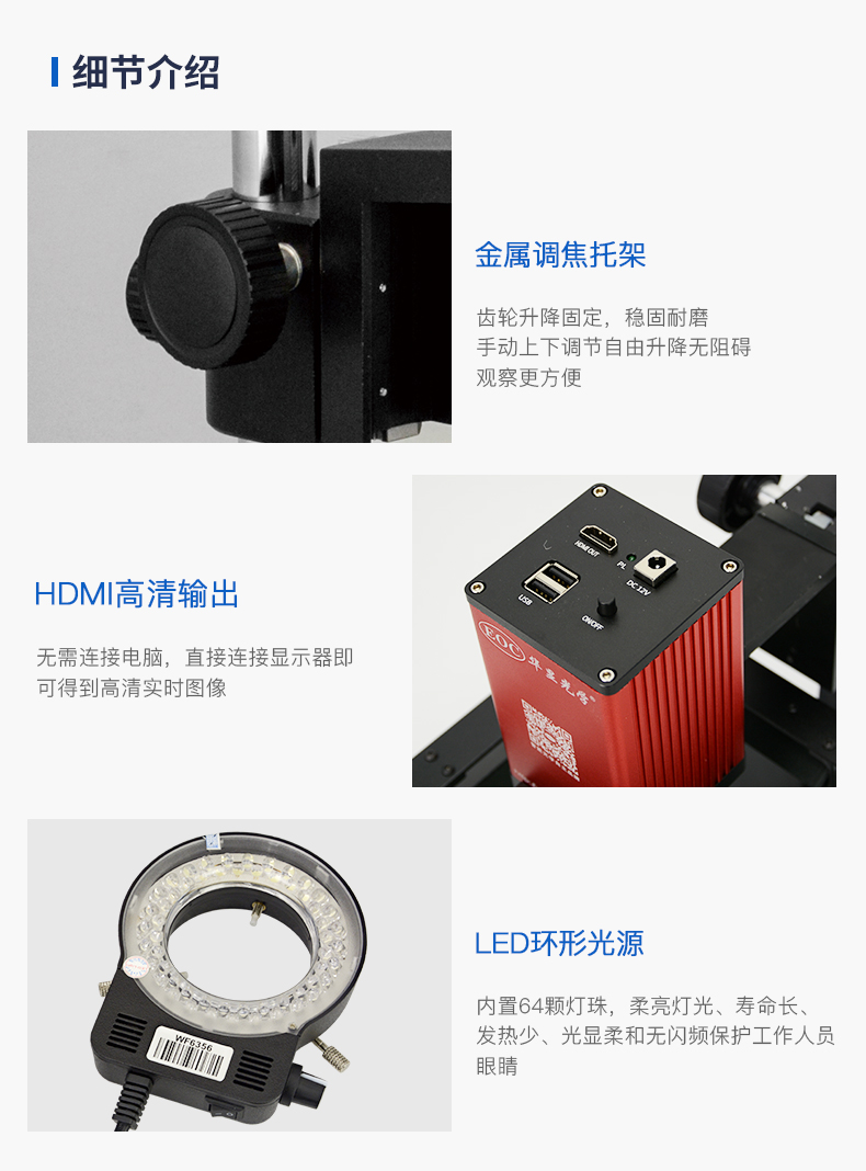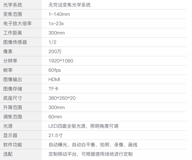 調(diào)焦范圍60mm,可滿足超大工件的觀察,可根據(jù)需求選配6寸或10寸的二維移動(dòng)平臺(tái)。
