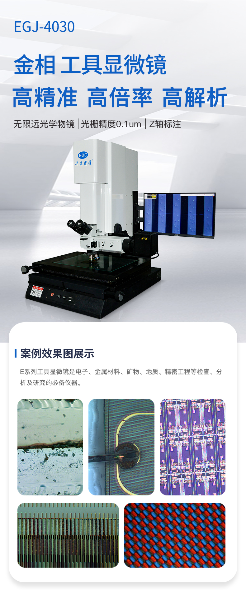 E4030工具顯微鏡是電子、金屬材料、礦物、地質(zhì)、精密工程等檢 查、分析及研究的必備儀器,