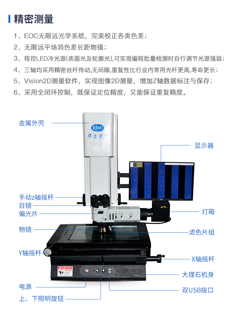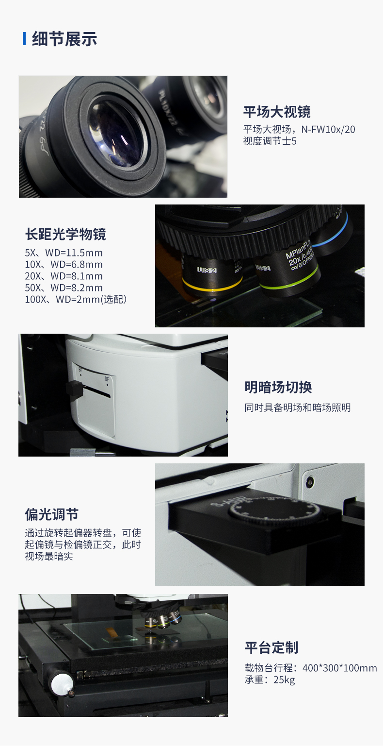 提供最佳的圖像質(zhì)量和亮度。采用大理石基座,高精密的移動(dòng)工作平臺(tái),z軸電動(dòng)調(diào)焦,無(wú)須站立操