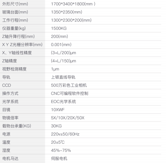 50X-500X光學(xué)放大,200X-2000X電子放大。采用CNC可編程測(cè)量方式,