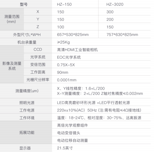 HZ系列高清光學(xué)測(cè)量?jī)x器,配置智能工業(yè)系統(tǒng),采用高清工業(yè)相機(jī),無須電腦