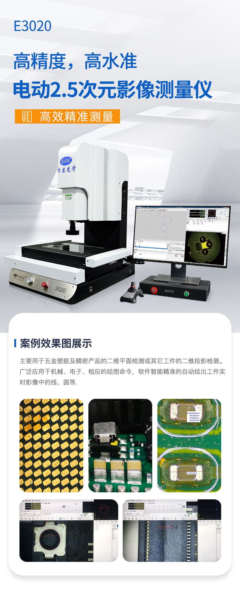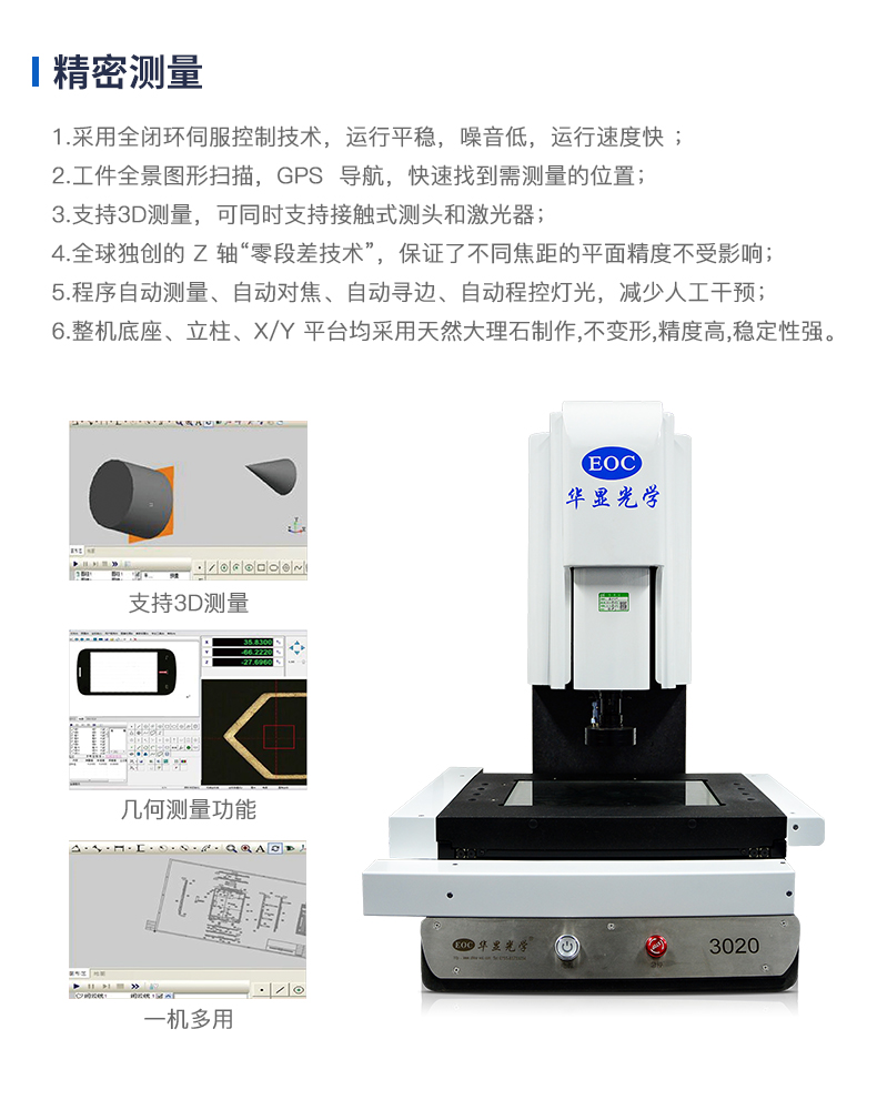 E-3020全自動桌面型影像測量儀結(jié)構(gòu)美觀大方,操作簡便,結(jié)合本公司自主研發(fā)的測量軟件,
