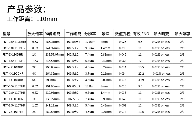 工業(yè)遠心鏡頭110mm工作距離 自動化設備鏡頭 同軸/非同軸 高景深