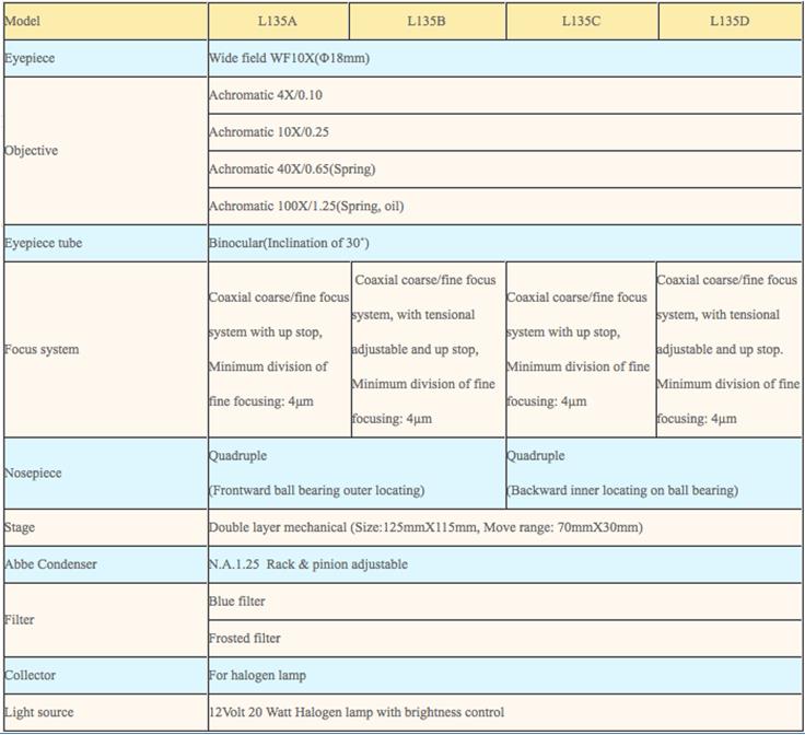 ·     L135 series biological microscopes are equipped with achromatic objectives and wide field eyepieces. They have clear image and wide view field through optical system. They can be broadly applied in biology medicine, agriculture, industry etc. They are the ideal instrument for medical treatment, teaching and scientific research.