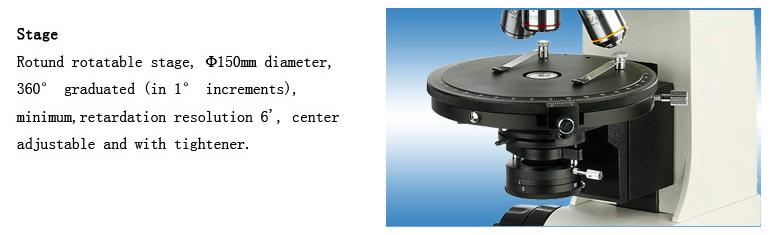 ▲ Rotatable stage, 360° graduated in 1° increments, minimum retardation resolution 6' center adjustable and with tightener Stage vertical effective movement up to 30mm.